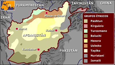 Mapa de las etnias de Afganistán (clic para ampliar)